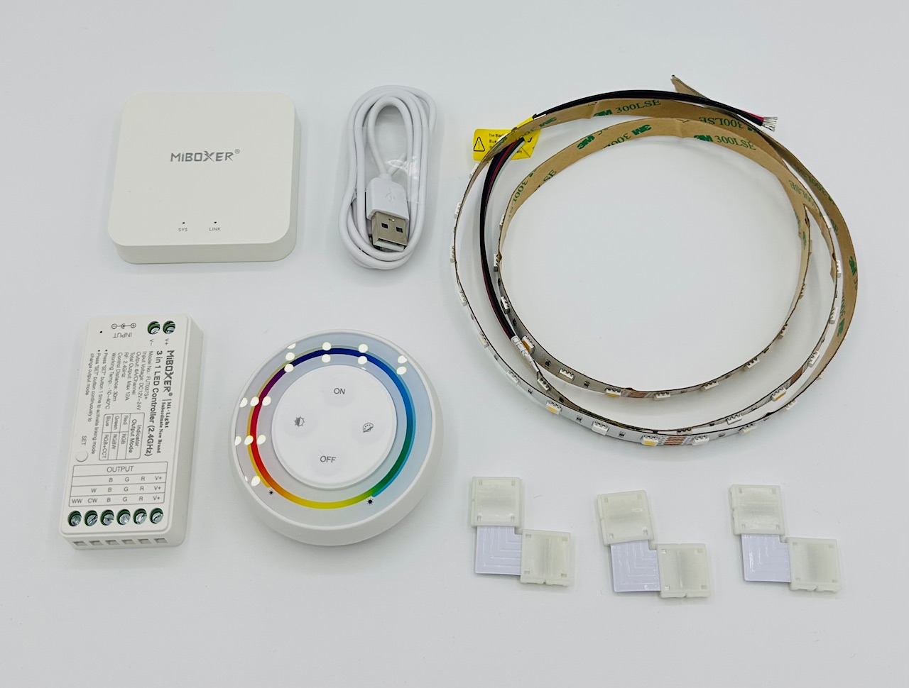 V sestavě je použit kvalitní RGBW pásek, který dokáže svítit barevně i bíle a je pouze na vás, jestli si zvolíte dekorativní barevné osvětlení nebo rozzáříte váš obývací pokoj kvalitním bílým světlem.