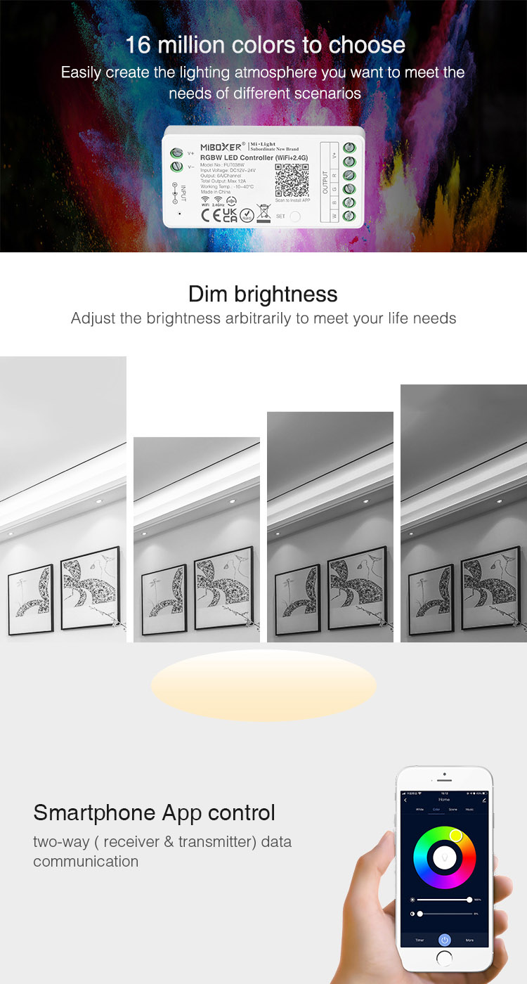 Aby jste mohli tyto chytré Mi-Light LED žárovky ovládat v plném rozsahu, budete jen potřebovat dálkový ovladač nebo WIFI box, pomocí kterého můžete žárovky ovládat i přes mobilní telefon. Řídící jednotka je již implementována do LED žárovky a není ji již potřeba dokupovat.