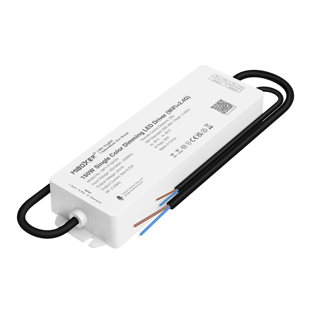 Chytrý napájecí zdroj s implementovanou řídící jednotkou Mi-Light WP1-P150-V24 pro ovládání jednobarevných pásků.