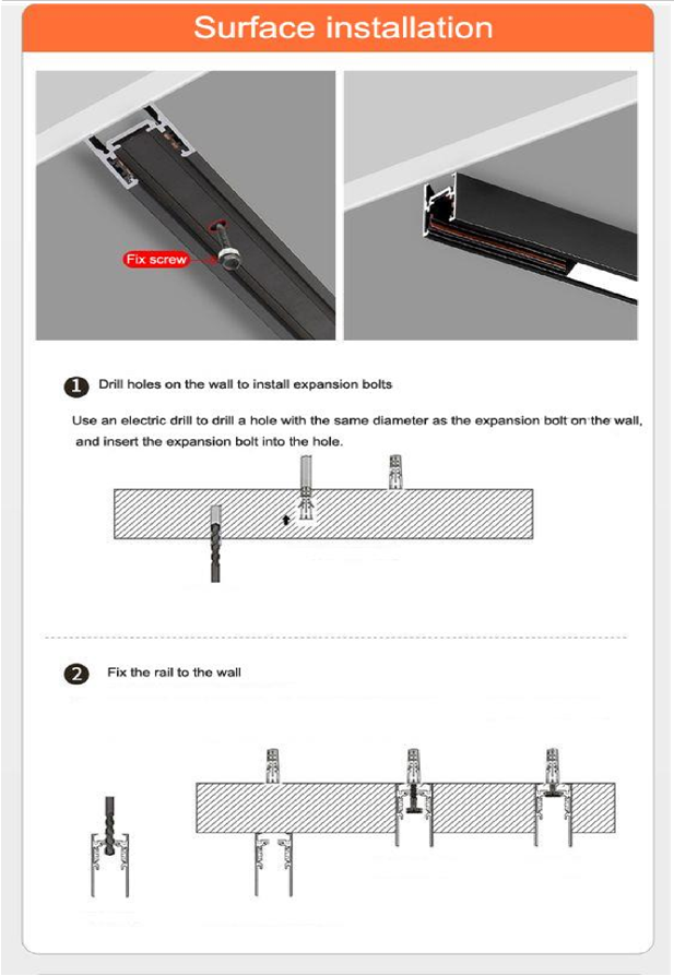 Lišty jsou vhodné jak pro klasickou přisazenou montáž na strop či stěnu, tak je lze rovněž elegantně zavěsit na lanka. Díky tomu, že jsou lišty vyrobeny z hliníku, lze je snadno zakracovat nebo případně pomocí spojek a úhlových prvků libovolně prodlužovat do různých tvarů.