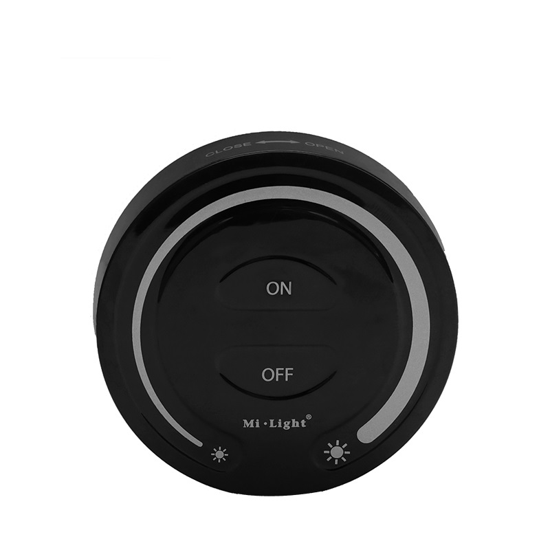 Bezdrátový RF LED ovladač Mi-Light v černé barvě určený k pohodlnému ovládání jednobarevných LED pásků.
