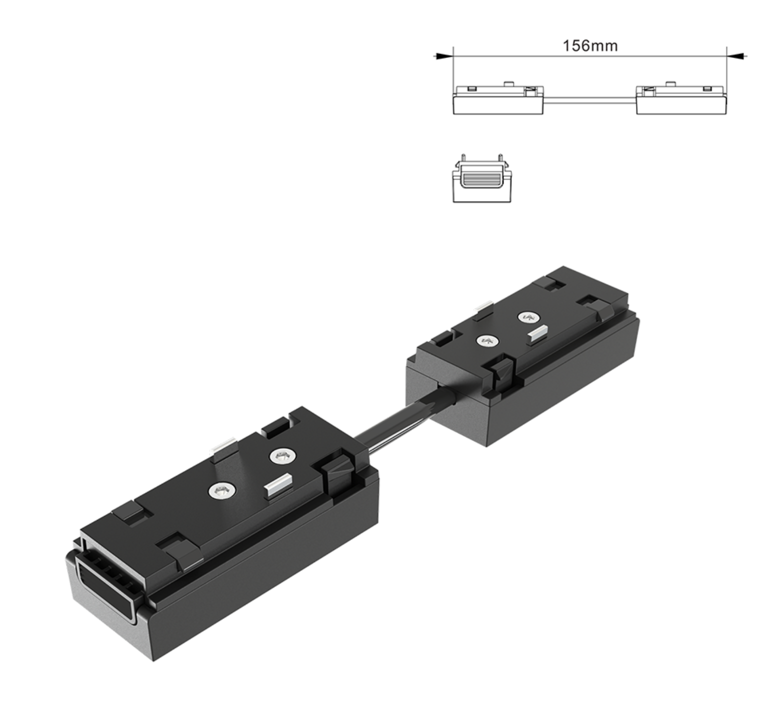Drátová rohová napájecí spojka pro MAGNETIC RAIL MINI systémy, která slouží k elektrickému propojení dvou lišt.